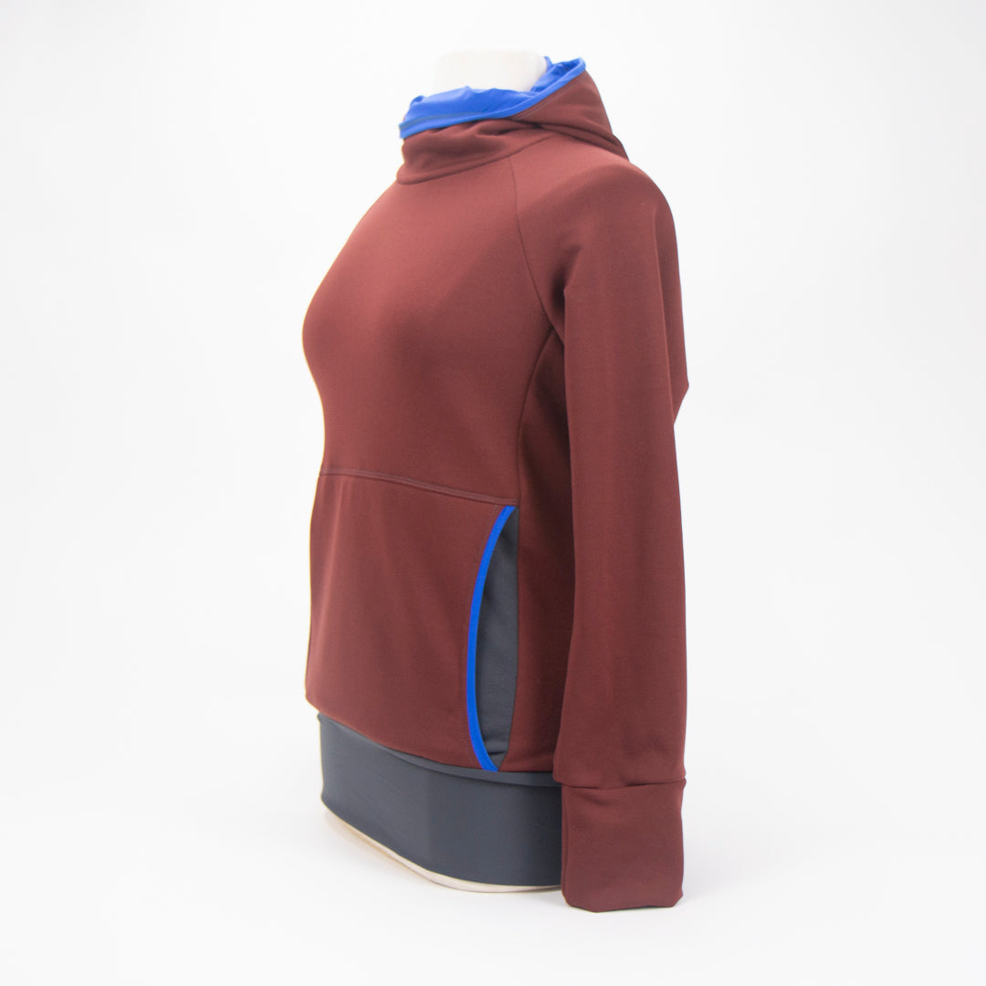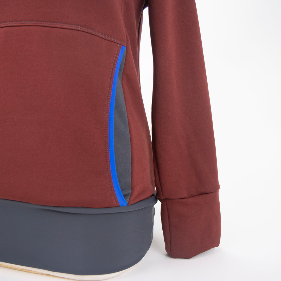 The Ella Roo hoodie combines convenience, style, and sustainability. Made from Polartec® Power Stretch™ fabric, it delivers comfortable warmth, 4-way stretch, and moisture-wicking performance—perfect for keeping up with your busy lifestyle. It's functional and fashionable, designed with thoughtful details like a kangaroo pocket on the front princess seams, a banded waist, and a cowl-inspired hood with a complementary lining. The fabric's low-friction, dual-surface construction ensures breathability and resilience, while its flattering raglan cut and versatile color palettes make it a wardrobe essential. Whether layering for outdoor adventures or cozying up at home, the Ella Roo+ has you covered. For a kid-friendly companion, check out the Joey+ hoodie!