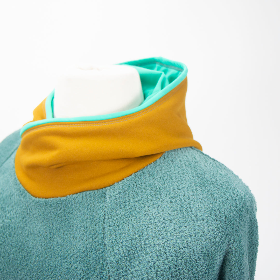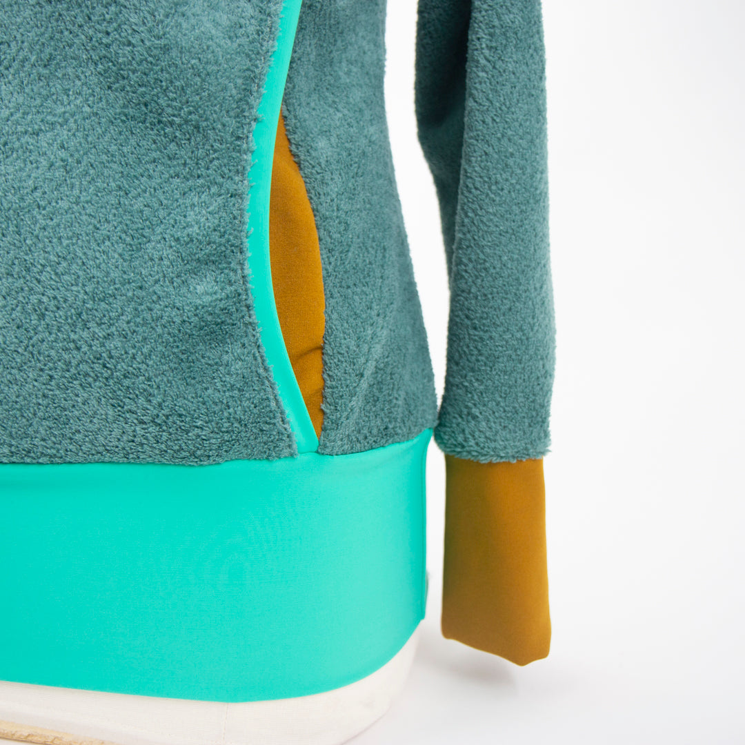 The Ella Roo hoodie combines convenience, style, and sustainability. Made from Polartec® Power Stretch™ fabric, it delivers comfortable warmth, 4-way stretch, and moisture-wicking performance—perfect for keeping up with your busy lifestyle. It's functional and fashionable, designed with thoughtful details like a kangaroo pocket on the front princess seams, a banded waist, and a cowl-inspired hood with a complementary lining. The fabric's low-friction, dual-surface construction ensures breathability and resilience, while its flattering raglan cut and versatile color palettes make it a wardrobe essential. Whether layering for outdoor adventures or cozying up at home, the Ella Roo+ has you covered. For a kid-friendly companion, check out the Joey+ hoodie!
